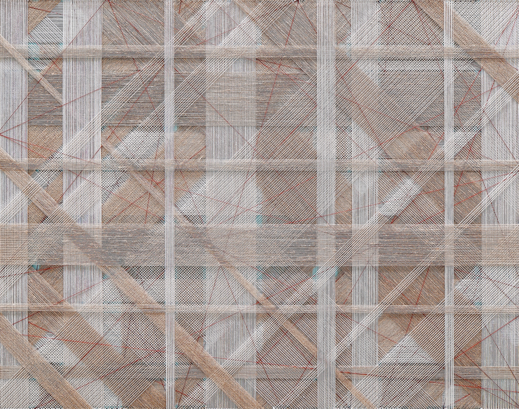 Gu Benchi, Erta No.54 Cotton thread, linen thread, acrylic Stainless-steel nails 155 × 122 cm 2017